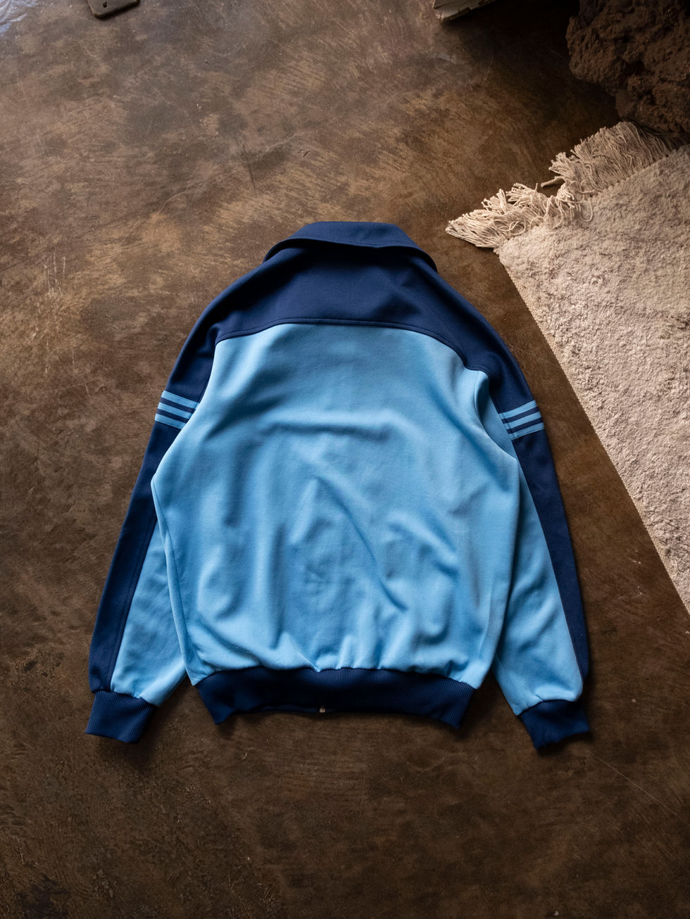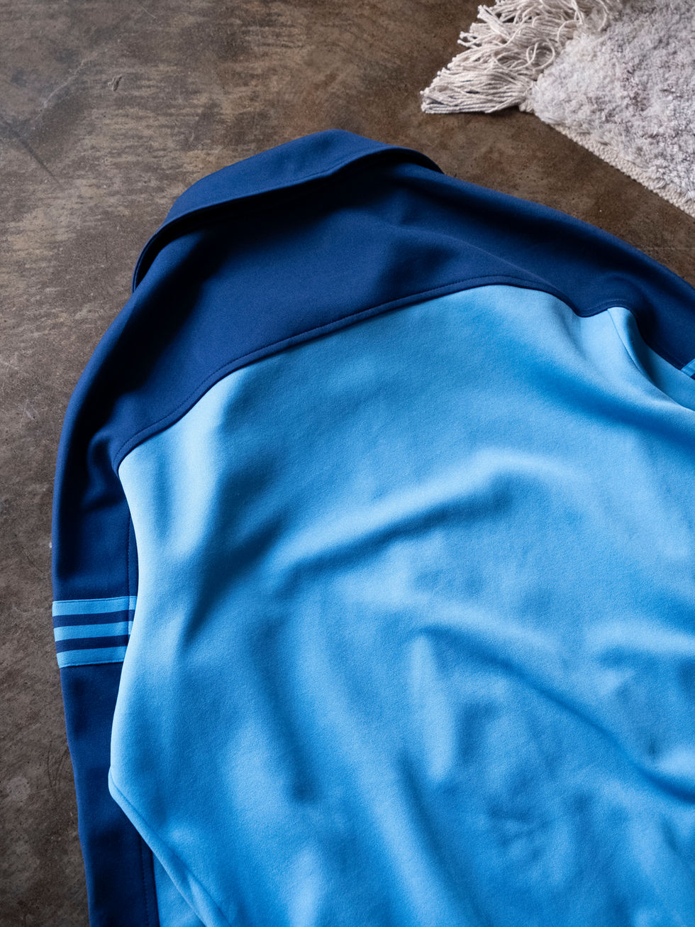 近年のトラックジャケットに多い伸縮性のある生地とは違い、こちらはしっかりと肉厚。だからこそ襟のヘタリが出にくく、シルエットもきれいに保たれます。