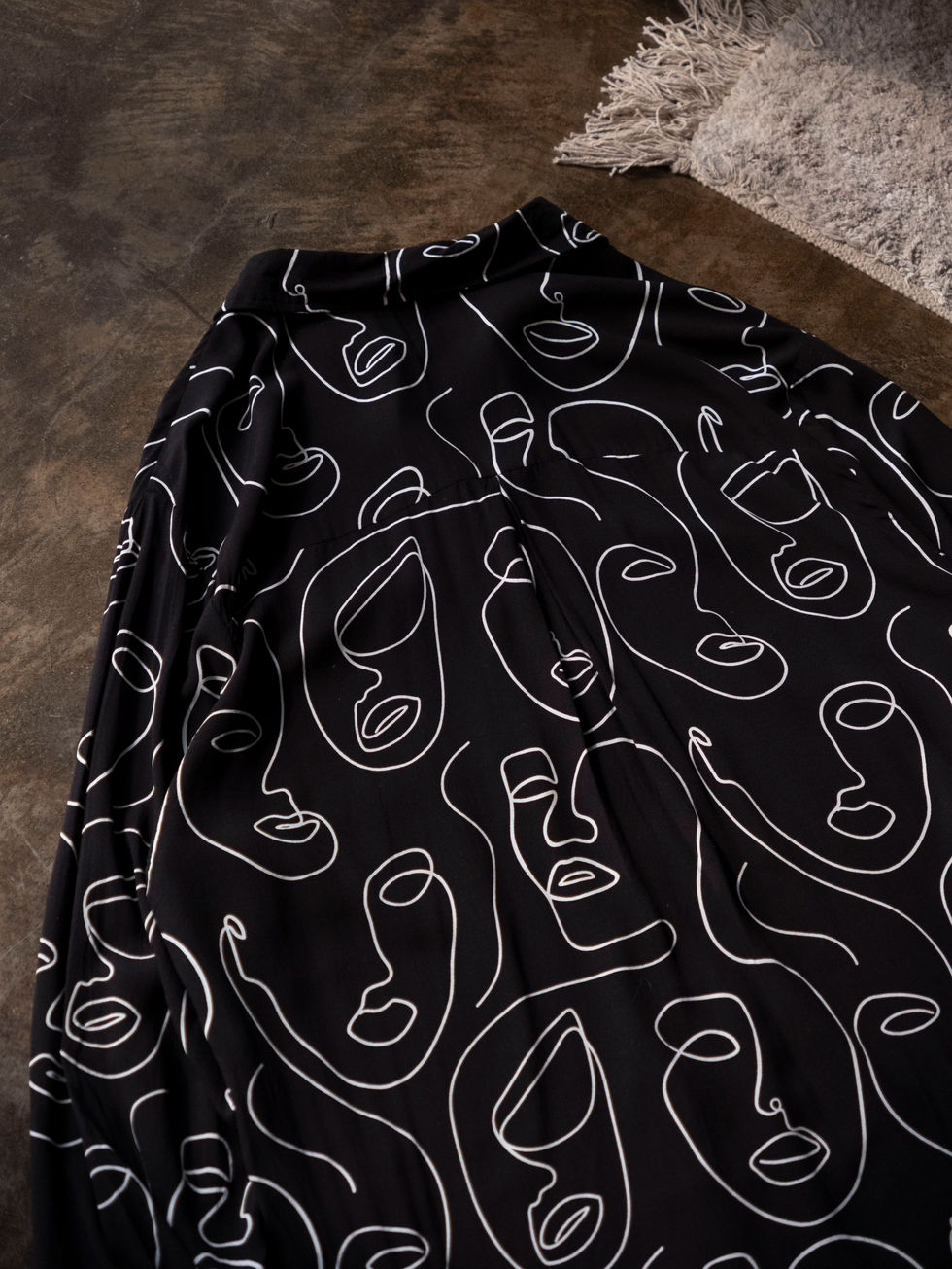 [Dead stock] Line Art Face Printed Open Collar Rayon Shirt
